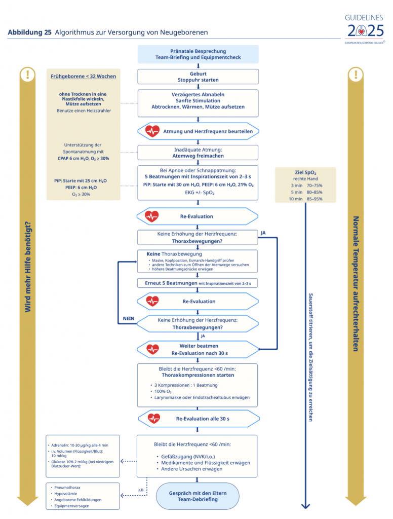 Die „Newborn Life Support“ Maßnahmen weichen von denen der „Standard ALS“ ab: